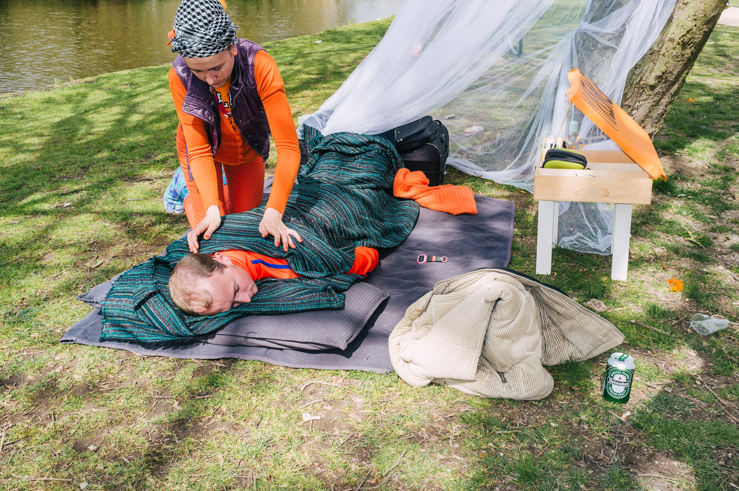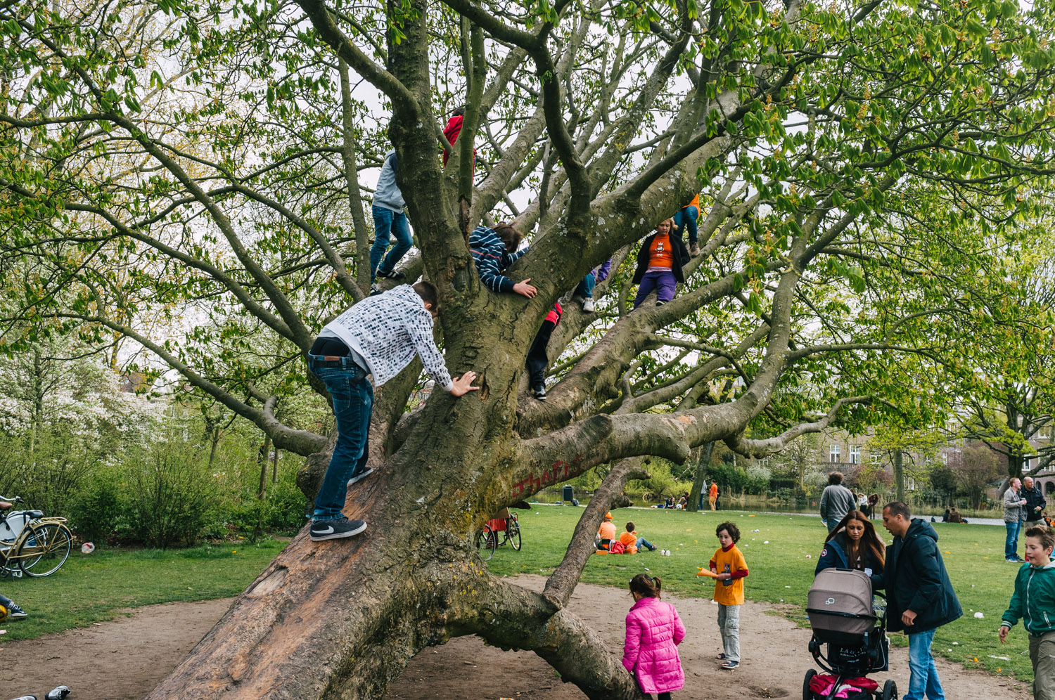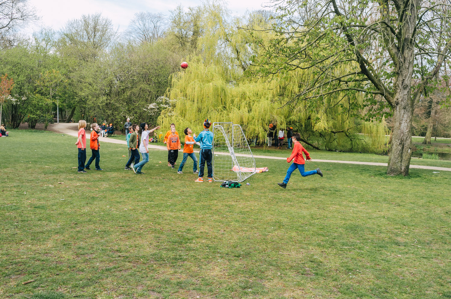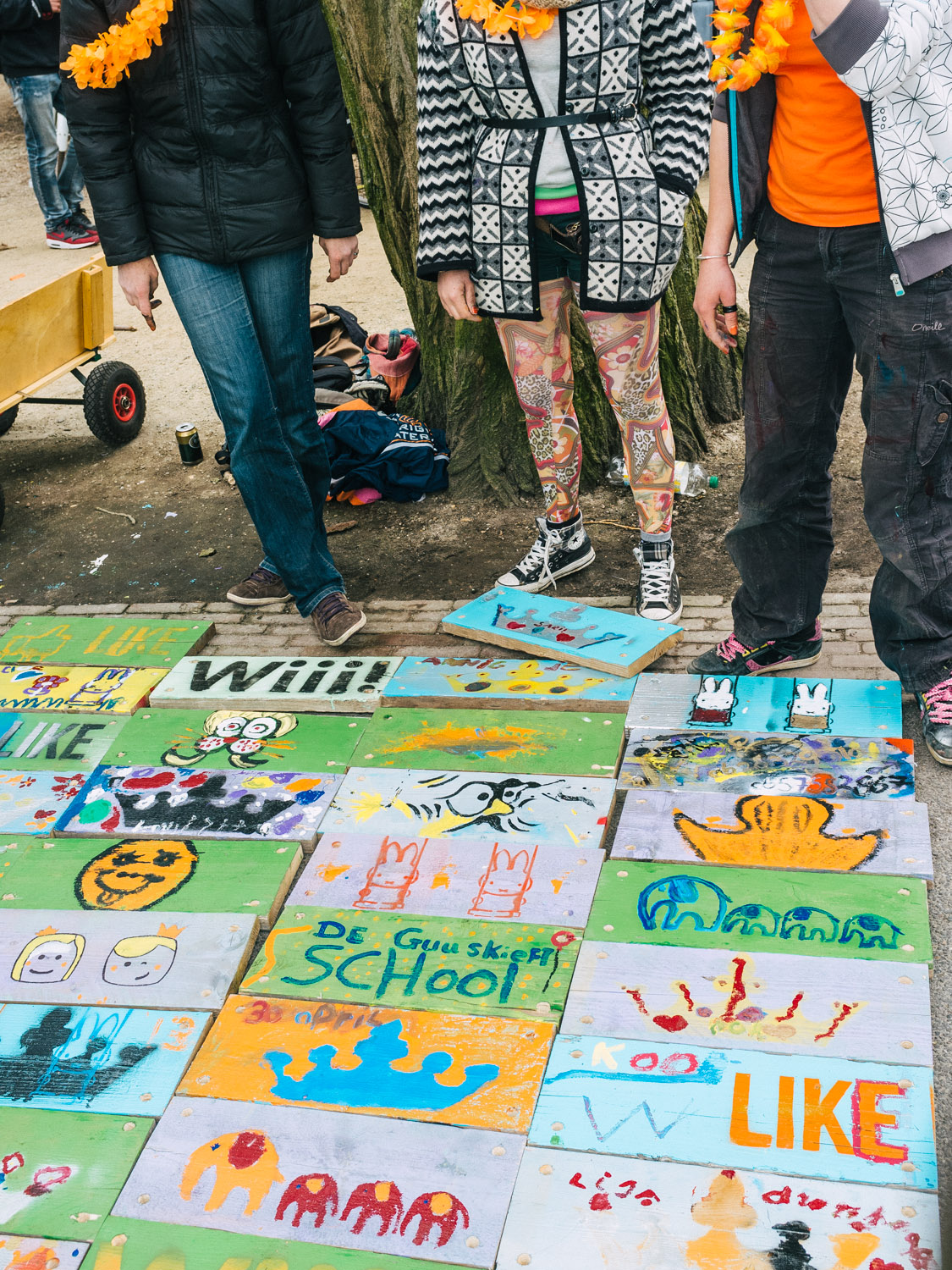 A nice stroll through the Vondelpark — kids playing, singing, dancing, selling, earning some pocket money — ended up around the Museum Square to enjoy a bit of sun with friends. Later we went for a walk around the south part of the city, watched our new King on TV and went out for a well-earned dinner @ Bazar. Came back to Museum Square for a a bit of André Riou before catching the tram home and soak my feet in a steamy little bath! Was good day out.
